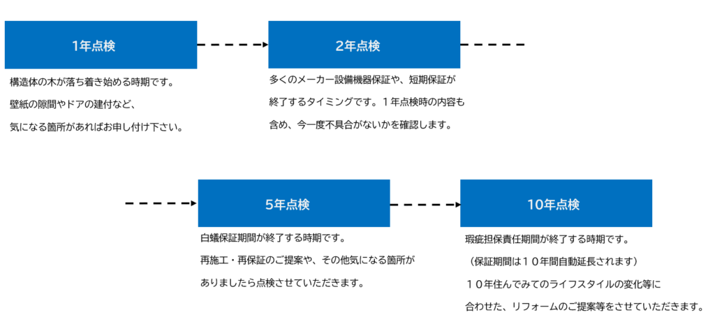 建てて終わりでなく、建てた後も続く住まいのパートナーとして、いつまでも安心してご相談いただける体制を構築し、末永く暮らしをサポートいたします。