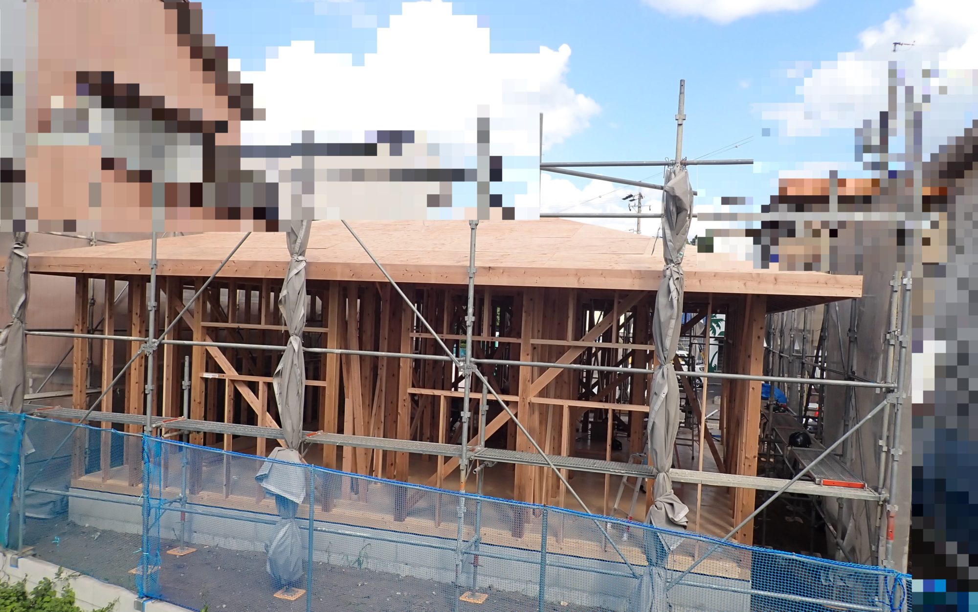 上棟は土台の状態から柱を立てはじめ、屋根伏せまで行う工程です。