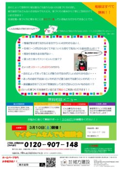 - 03月08日 大治西條平屋モデルハウスのご成約をいただきました